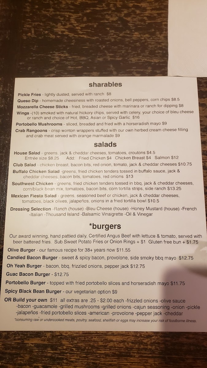 extras are .25 - $2.00 each. olive sauce / bacon / guacamole / grilled mushrooms / grilled onions / cajun seasoning / onion / pickle / jalapenos / fried portobello slices / american / provolone / pepper jack / cheddar